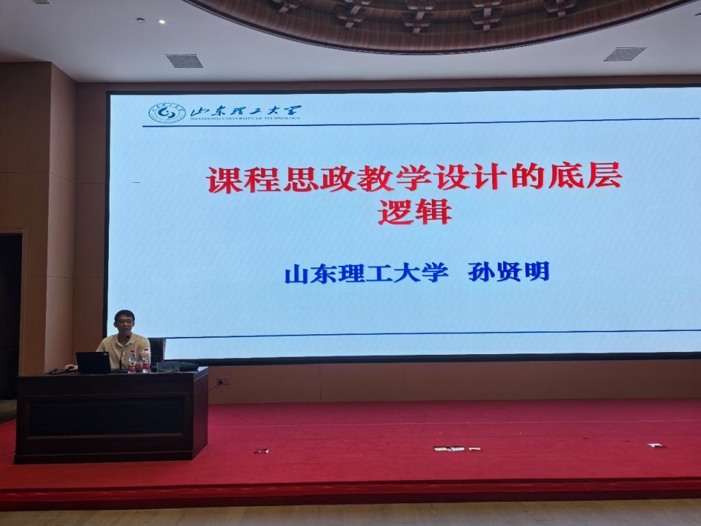 孙贤明以“课程思政教学设计底层逻辑”为主题,围绕“课程思政的内涵与意义”“思政元素的挖掘与融入”“课程思政教学的系统设计”三大模块,结合自身多年教学研究、评审以及在全国多所高校开展课程思政培训的丰富经验,进行了深入浅出的讲解。