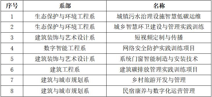 为提升高校学生就业能力,教育部实施“双千”计划,在全国范围内开设1000个“微专业”(或专业课程群)和1000个职业能力培训课程。9月中旬,我校根据省教育厅职教处函件《关于填报开放型区域产教融合实践中心实践训练项目的通知》,结合学校特色专业与特色课程,积极组织申报了城镇污水治理设施智慧低碳运维、短视频定制与传播、系统门窗智能制造与安装技术等8个高职类实践实训项目。经专家审核,全部获批通过。