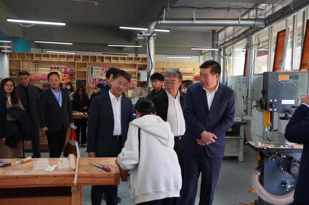 2025年11月1日,学校“匠心筑梦 共谱华章”高质量发展大会期间,全国市长研修学院党委书记全河,中国建筑节能协会会长倪江波,省住房城乡建设厅厅长王玉志,省住房城乡建设厅党组成员、副厅长(正厅级)侯晓滨,省生态环境厅督察专员、一级巡视员霍太英,省教育厅二级巡视员侯典明,青岛理工大学党委书记杨赟,山东建筑大学党委书记杨景波等与会领导及校友代表,在学校党委书记殷涛的陪同下,考察参观了学校校史馆、创艺工坊、中国古建工匠技艺传承馆等场馆,调研指导学校文化建设与工匠人才培养。