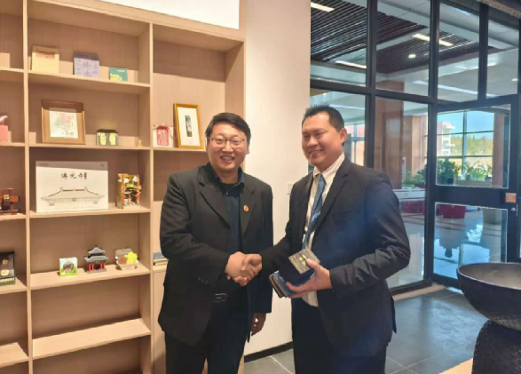 11月1日,柬埔寨王国驻济南总领事毛胜宁应邀出席我校“匠心筑梦 共谱华章”高质量发展大会,并实地考察中国古建筑技艺传承馆、山东古建筑构件博物馆和创艺工坊。考察结束后,我校党委副书记、院长张国强,党委委员、副院长禹爱美与毛胜宁座谈。