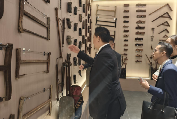 毛胜宁首先考察我校中国古建筑技艺传承馆。学校建筑装饰与艺术设计系党总支书记孙亚超、专业教师张晓艺介绍,这是一处集教学、实训、展示、研学、体验、模拟操作六种功能为一体的综合性场所,展示了中国建筑的历史沿革、建造过程、主要工艺。毛胜宁饶有兴致地观看传统木作榫卯结构的搭接方式,仔细察看石雕、砖雕、木雕的造型、纹样和图案,认真研究斧锛锯刨传统木工工具,临行前愉快接受了孙亚超赠送的该系学生制作的文创产品。
