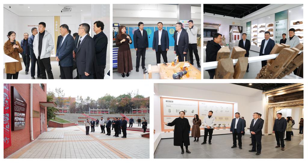 领导一行先后参观了创艺工坊、工匠技艺传承馆、山东古建筑构件博物馆、红色文化长廊和校史馆等多处校园特色场馆,近距离观摩了学生实训作品,对学校实训基地建设的专业性与实用性进行交流;深入了解了学校在古建技艺保护、传承与创新方面的探索实践,对馆内丰富的藏品与深厚的文化底蕴印象深刻;共同回顾了红色文化长廊的建设意义及红色文化内涵,探索育人灵感、定格两校情谊;在校史馆参观环节,系统回顾了学校的发展历程、办学成就与未来规划,对学校在长期发展中积淀的办学特色与精神风貌给予赞赏。
