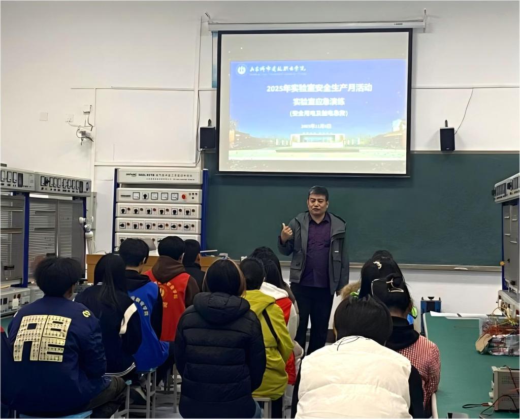 2025年11月6日,实验实训中心联合安全保卫处,在互联网+实训室、电工实训室及水化学实验室分时举办了实验室安全培训活动。各部门实验室安全负责人和学生代表参加了培训。