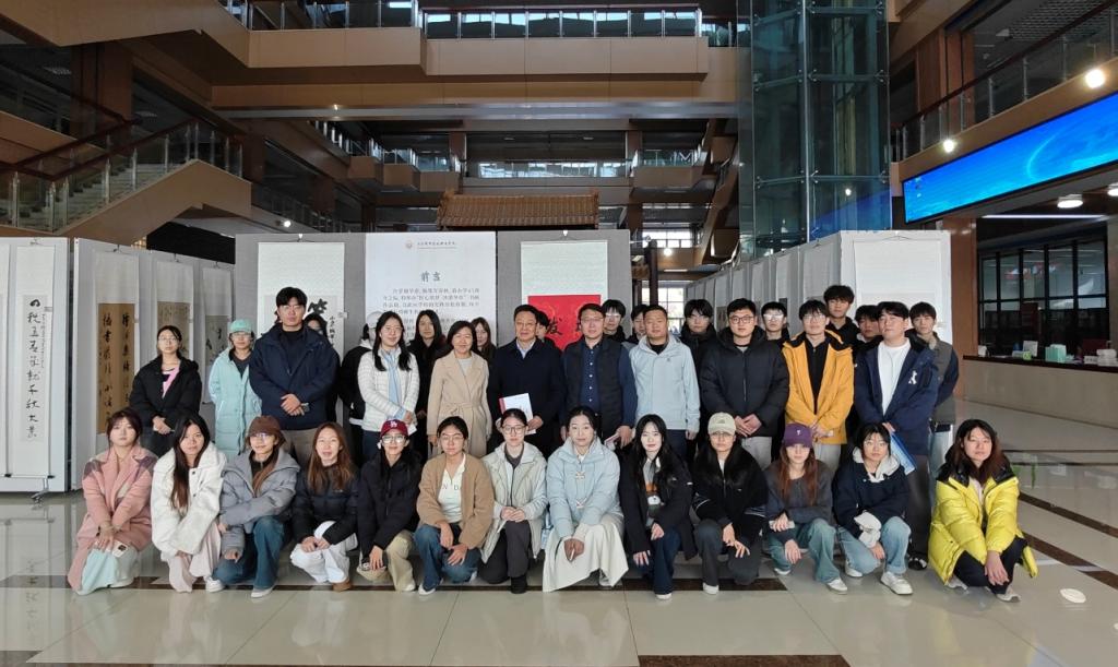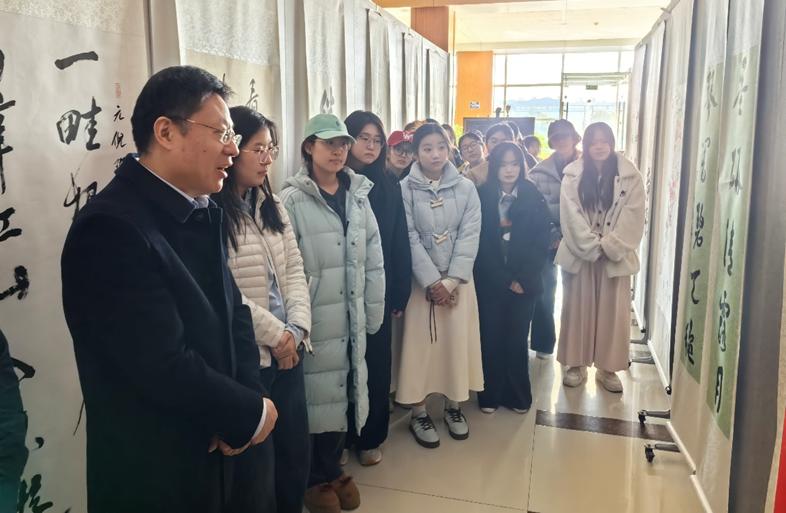 近日,我校图书馆一楼大厅翰墨飘香,一堂以师生书画作品展为实景教材的主题思政课在这里生动开讲。学校党委委员、副院长刘庆堂亲临现场,带领图书馆副馆长娄淑娟,建筑装饰艺术系教师常猛、王元壮、赵璐等,共同为同学们带来了一场融艺术审美与思想启迪于一体的沉浸式教学。