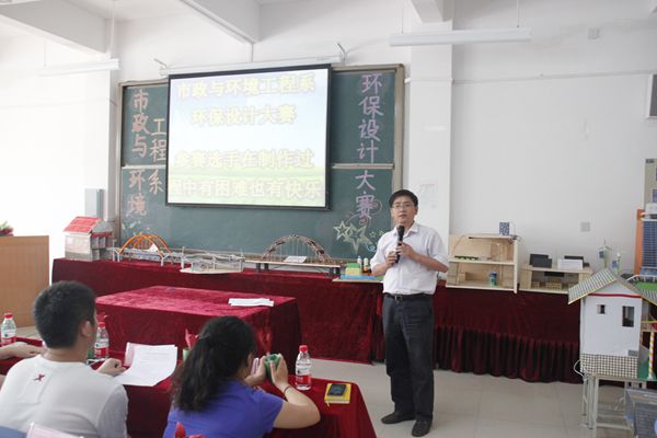 2014年6月5日下午,市政与环境工程系在1号系部楼合堂一隆重举办了第七届环保设计大赛。市政系曹永先副主任、实训中心甘信广科长、楼宇专业教研室主任尹静老师及市政系班主任、辅导员老师们担任了本次大赛的评委。
