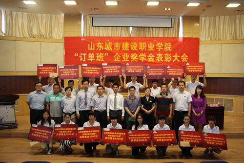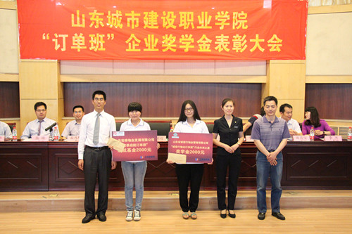 2014年6月5日,我院物业管理专业“订单班”企业奖学金表彰大会在山东城市建设职业学院道德讲堂报告厅隆重举行。学院高绍远副院长、山东宏泰物业发展有限公司副总裁韩玉峰、山东省诚信行物业管理有限公司副总经理路敏、宣传统战部部长孟凡辉、工程管理系系主任李元美、工程管理系副书记李杰、工程管理系副主任任新华等领导出席了表彰大会,工程管理系全体老师和300多名同学参加了表彰大会,大会由工程管理系教学管理科副科长马晓主持。
