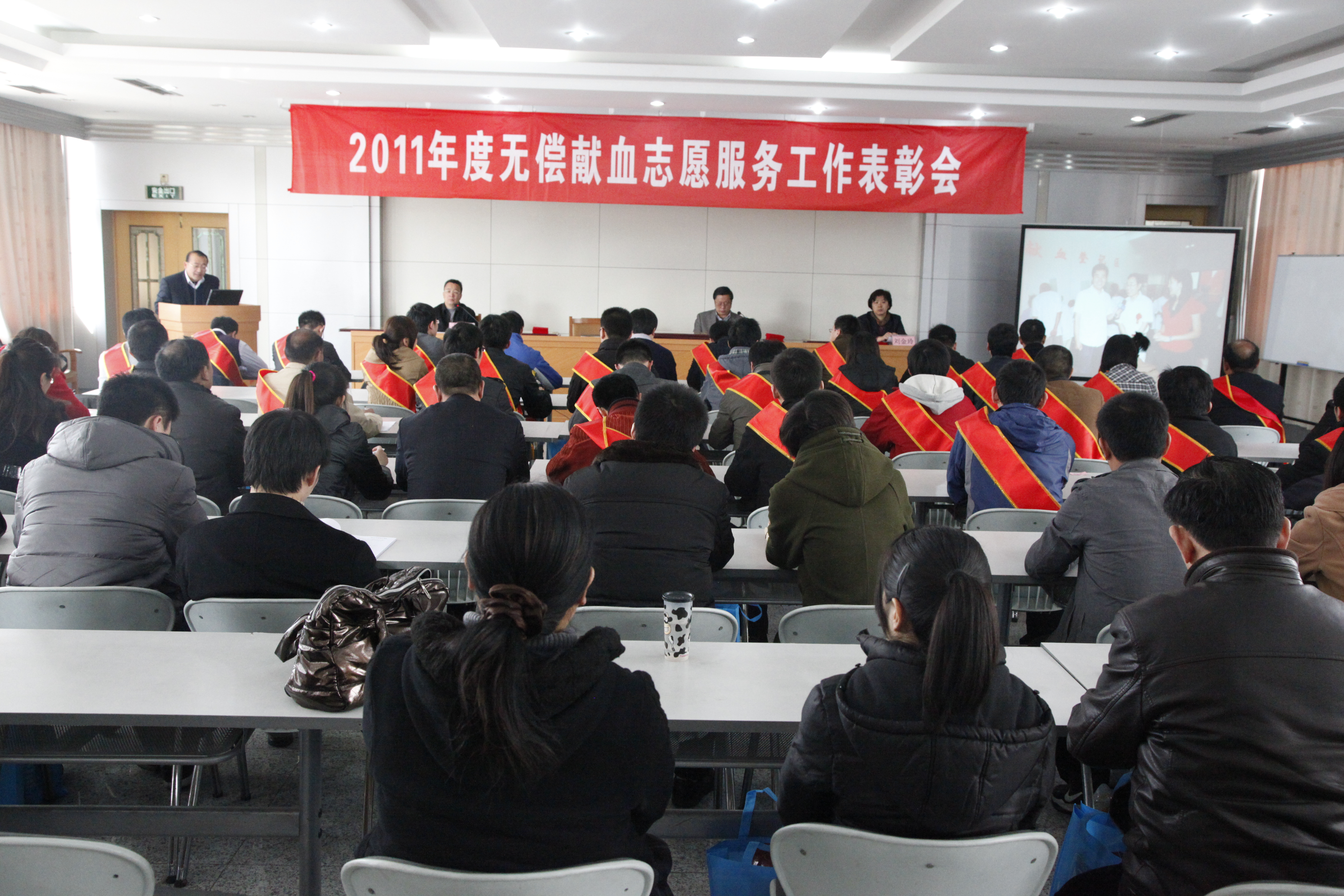 2012年3月25日,山东省血液中心召开无偿献血志愿服务工作表彰大会,对2011年度无偿献血志愿服务工作先进集体和个人进行了表彰。中心党委书记龙浩、副主任朱永宝、刘金玲出席了会议,山东城市建设职业学院、驻济30所高等院校及社会各界的70余名无偿献血志愿者代表参加了会议。
