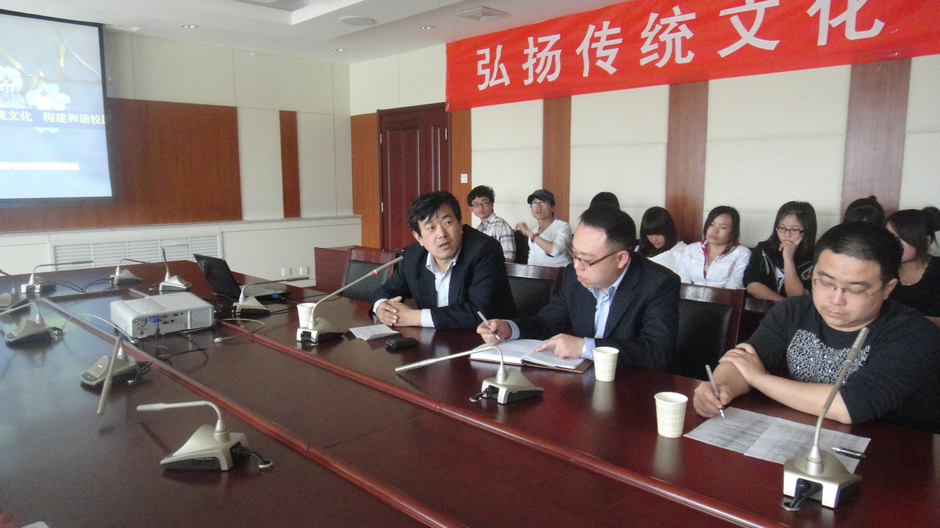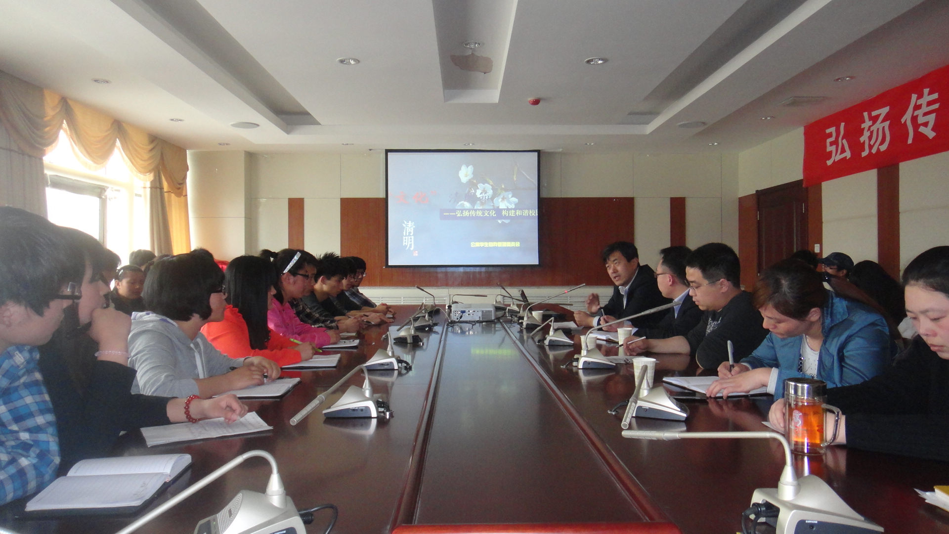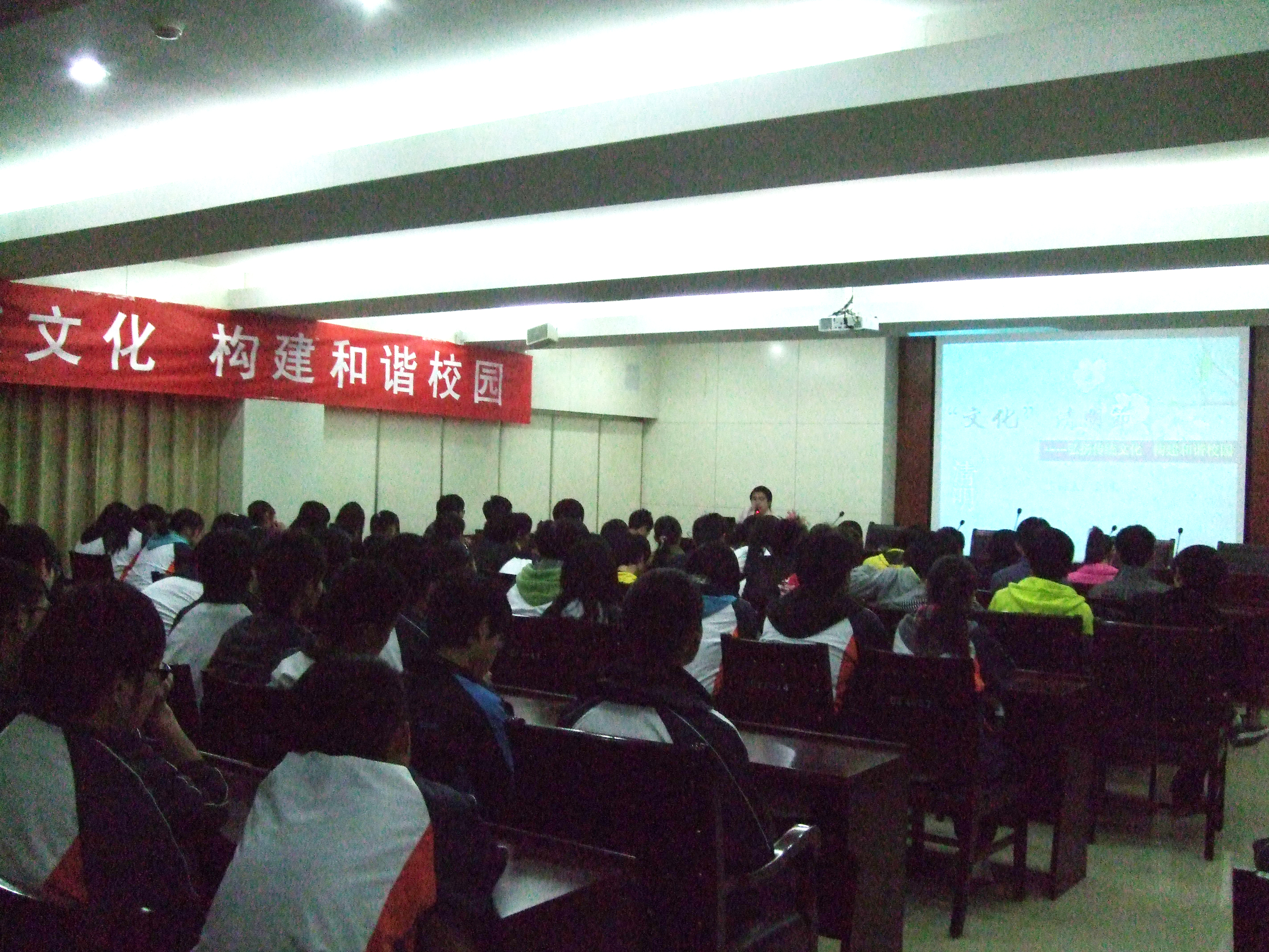根据十七届六中全会决议中关于“深入挖掘民族传统节日文化内涵,广泛开展优秀传统文化教育普及活动”的精神,在清明节前夕,学生工作处公寓管理科组织学生代表,举办了以“弘扬传统文化,构建和谐公寓”为主题的教育活动。