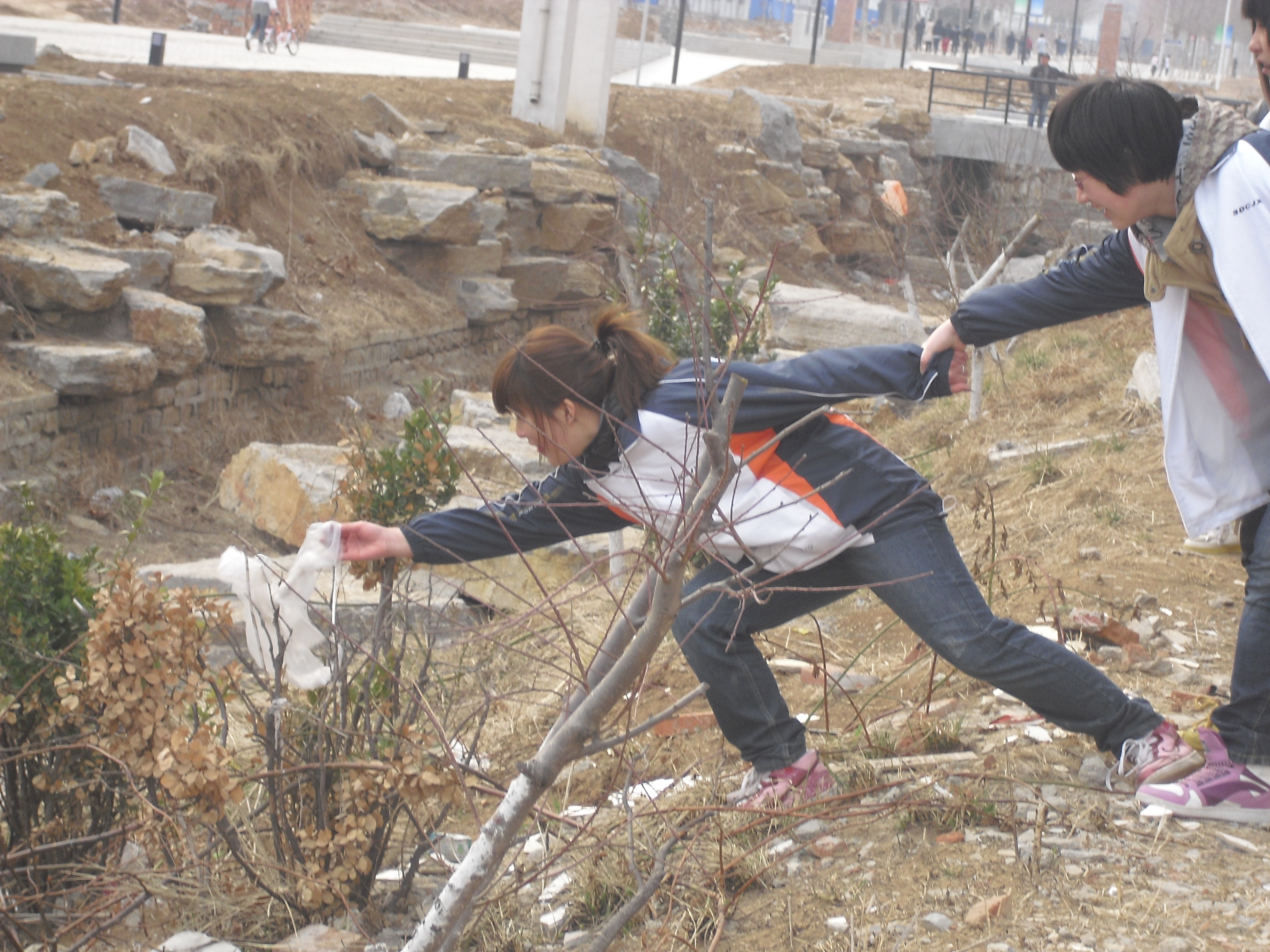 为进一步推动学雷锋活动深入持久开展, 2012年3月8日,我院团委在校园内组织了“捡拾白色垃圾,创建绿色校园”青年志愿者服务活动。