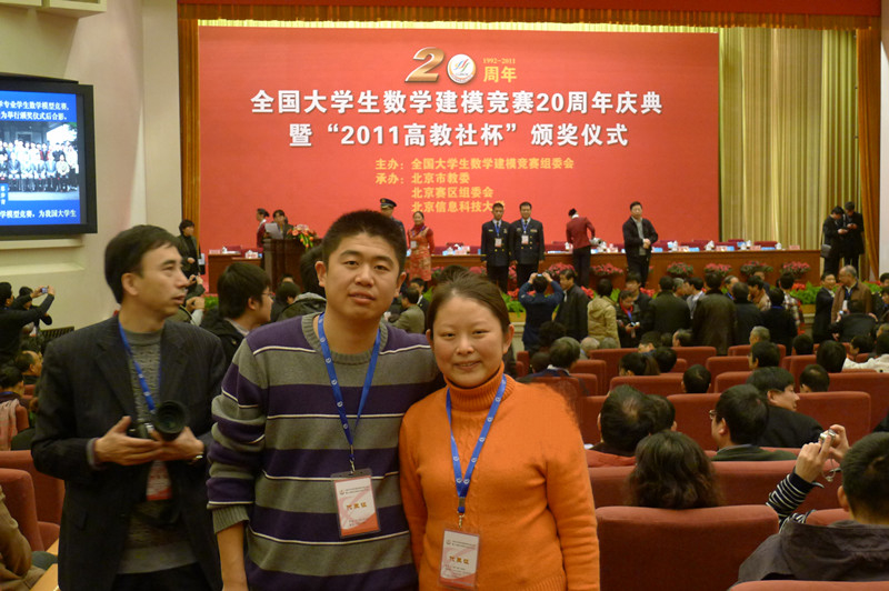 全国大学生数学建模竞赛20周年庆典暨2011年“高教社杯”颁奖仪式于12月22日在北京人民大会堂隆重举行。我院李婧梓老师与何召飞同学作为山东赛区国家一等奖获奖学校代表之一参加了颁奖会。